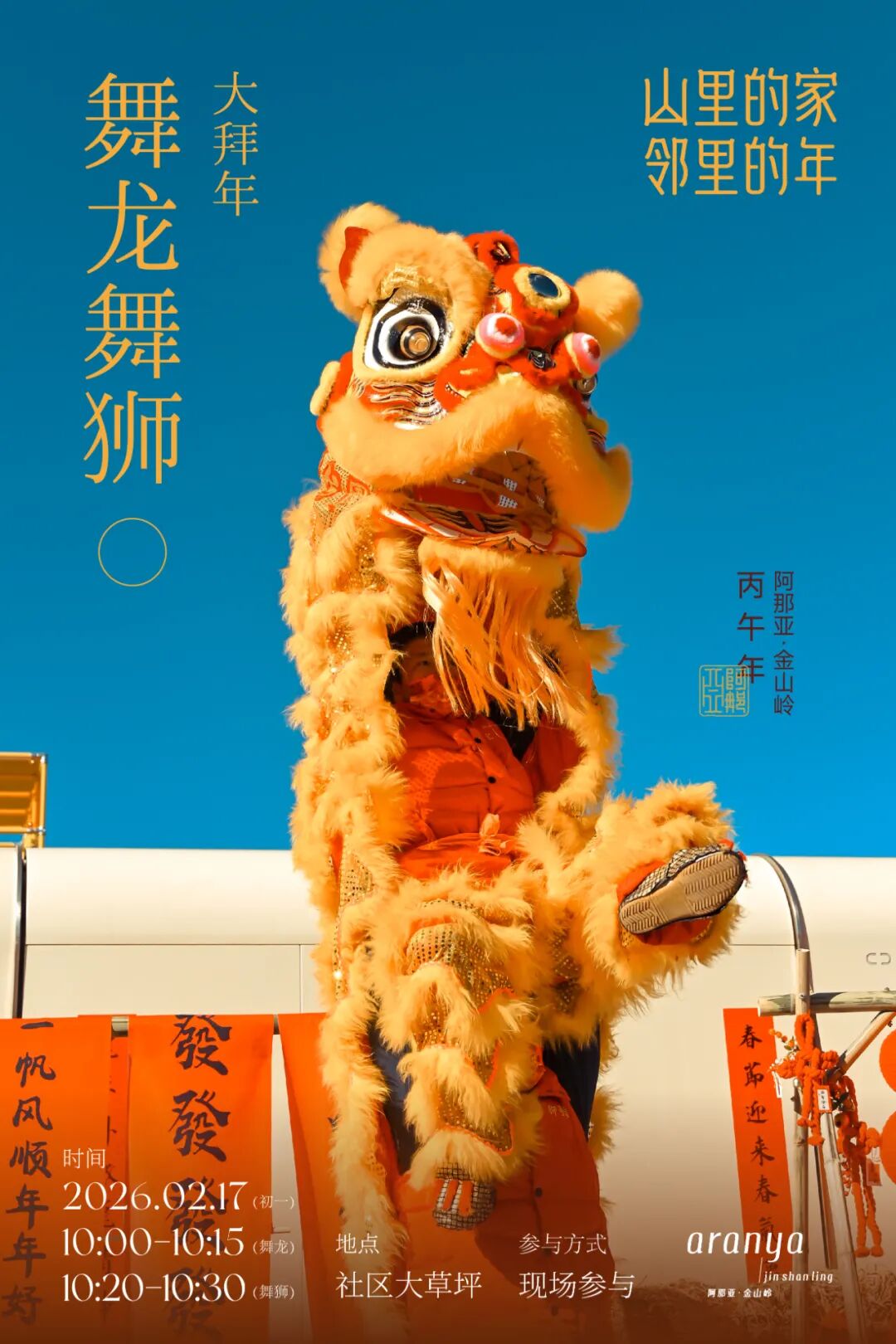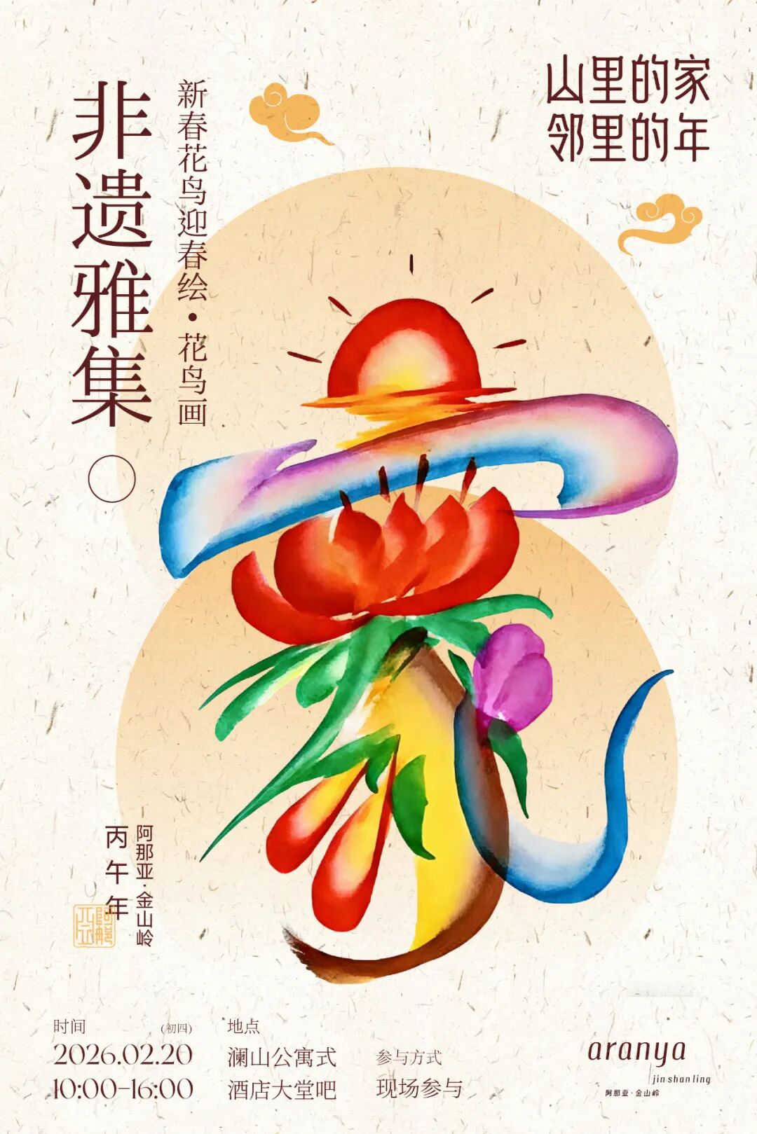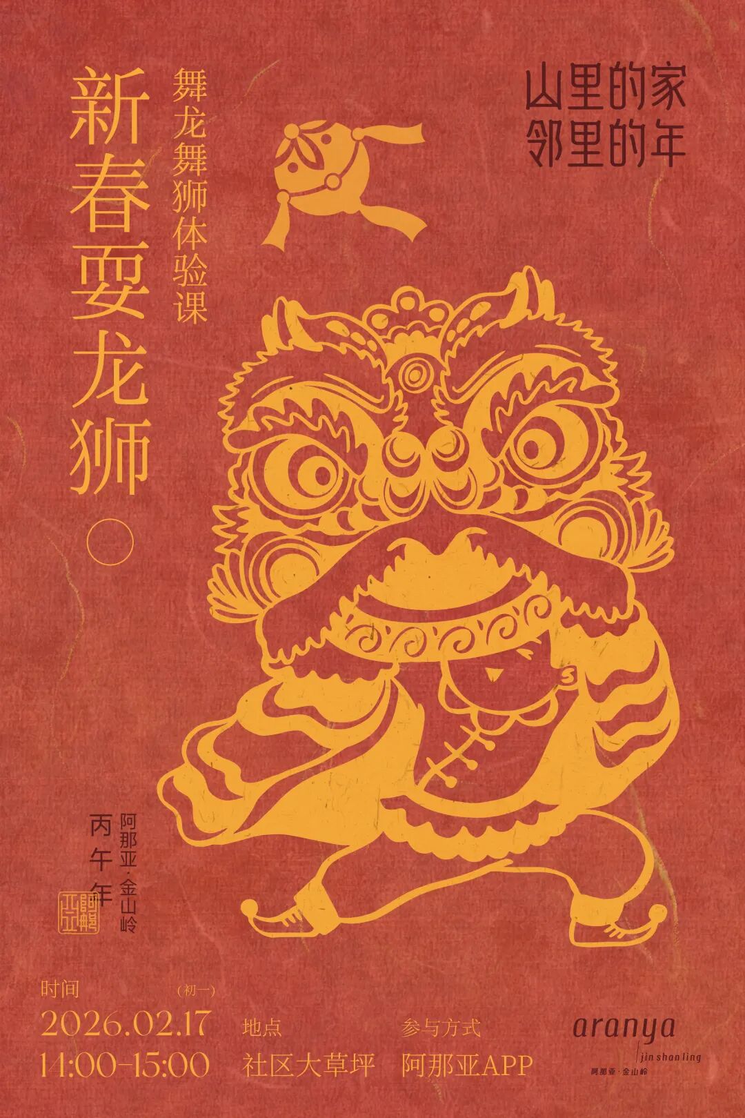 新年最动人的,永远是人与人的相聚和重逢。与邻居一起包饺子;家人齐聚照全家福;手作花灯、围炉煮茶……回归温暖的人间烟火,珍藏团圆的美满时光。山居的冬日,还蕴藏着无尽的活力。冰上滑行、岩壁攀登、踏雪访古……动静之间,开启身心与自然的酣畅对话;积蓄能量,准备迎接即将苏醒的春天。新春将至,阿那亚·金山岭已准备好所有的暖意与精彩,诚邀大家回到山里的家,与亲人、好友、邻居相约,共赴一场团圆、温暖、趣味盎然的中国年!锣鼓声响,震彻层峦,唤醒了蛰伏一冬的山谷春意。金龙昂首,瑞狮腾跃,带着千年的祥瑞,踏福而至。在铿锵的节奏里,非遗的活力与山野的灵气共舞,让新春的第一缕喝彩,响彻云端。在舞龙舞狮体验课上,人们还能亲手执掌龙首狮头,感受这份热闹背后的温度与重量。邻里接力,默契配合,举擎、奔跑、摇摆,让古老的传统成为可触、可感的新春仪式。在动静之间,感受非遗文化在山中绵延不息,让团聚与欢腾,成为山居年味里最生动的篇章。方寸戏台,藏尽中式奇幻。指掌翻覆间,古彩戏法以虚写实,信手拈来新春的吉庆;袍袖飞扬处,变脸绝技以快写意,瞬息幻化百态人生。非遗之妙,在于亦真亦幻,亦庄亦谐。古老技艺的智慧与幽默,让人在屏息与惊叹间,化作满堂会心的喝彩。铁水腾空,化作满天星雨;火壶流转,舞动不夜银花。源自民间的焰火艺术,承载着古人对光明最炽热、最浪漫的想象。当万千璀璨照亮夜幕,与山谷的静谧星空交相辉映,“火树银花不夜天”的古老诗境,在此刻化为真实的震撼。邻里亲友,并肩仰望,让流淌的光焰凝固时间,将这份绚烂夺目,深深镌刻进山谷的新春记忆之中。时间:2月18日(初二)、2月20日(初四) 17:30-18:00三尺生绢,绘就宇宙乾坤;十指灵动,召唤古今传奇。