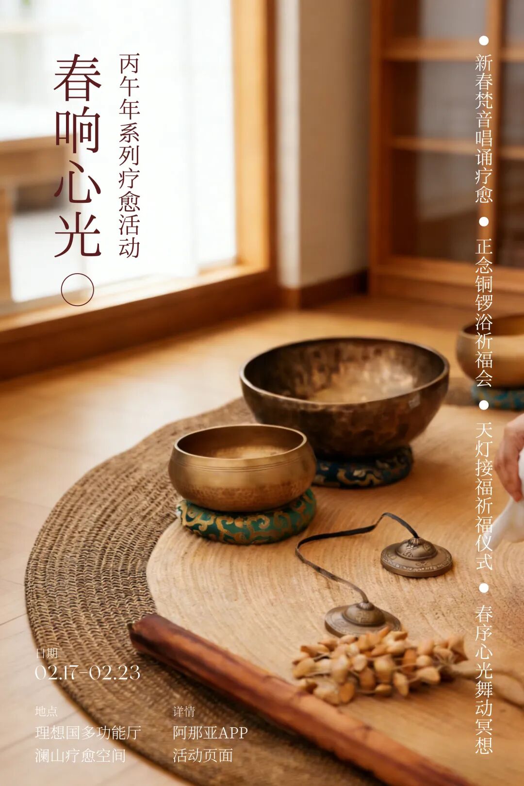 在naive理想国,新春梵音、正念锣鼓、天灯接福……从晨间到夜幕,从初一到初七,以一系列疗愈活动,让人们在新春伊始,收获内在的澄明与安宁。