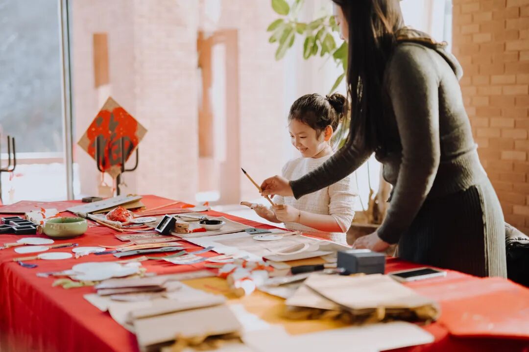 邻居们围坐一旁,静观墨与纸相遇的奇妙瞬间,品味东方写意美学的韵味流转。遇上心仪之作,还可带回家中,装点新春门庭。