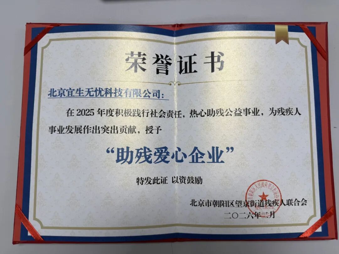 宜生动态丨喜迎新年!宜生无忧获颁“助残爱心企业”,携手各界共贺温暖马年