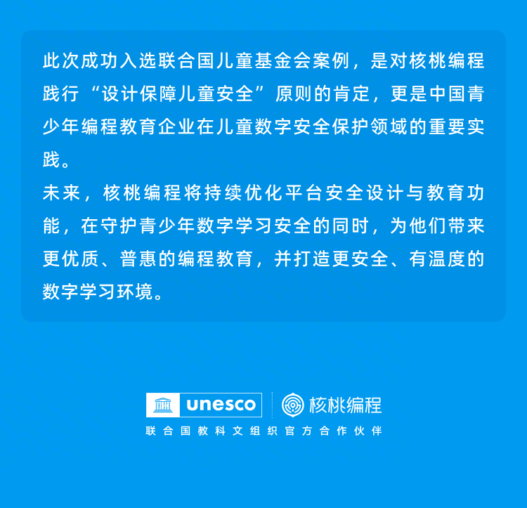 国际认可!核桃编程荣登联合国儿童基金会官网,守护青少年编程学习安全