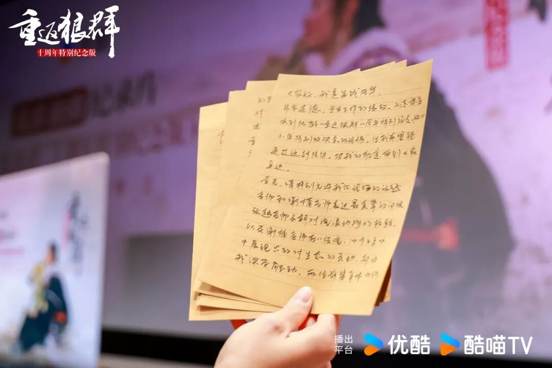 优酷独播纪录片《重返狼群10周年特别纪念版》再度走红,缘起于抖音影视解读创作者@笔战风华 于1月8日发布的一条“爆款”视频,这条20分钟的纪录片精讲视频获得近2亿播放,1000多万次点赞,带动优酷站内“重返狼群”搜索和播放量激增,弹幕里挤满了“2026年考古”、“从抖音赶来”的新鲜留言。截至2026年2月9日,抖音上《重返狼群》相关视频数量超过10万,播放量超30亿,点赞量破亿,不仅有“牵马救人”、“雪地送别”、“归还红腰带”等多个高光片段广泛传播,抖音网友围绕格林的故事持续进行创意手绘、第一人称改写等“二创”,延伸出若尔盖草原保护、反盗猎等多个社会议题。此外,活动现场嘉宾与观众们还收到抖音影视作者@笔战风华 的亲笔手写信,致敬纪录片《重返狼群 10周年特别纪念版》、致敬格林,最后并深情呼吁“如果我的视频曾让你眼眶湿润,请务必去优酷观看完整的纪录片。因为只有那些未被剪辑的完整影像里,你才能真正读懂格林那声狼嚎声背后真正的灵魂。”抖音作者@Ceika世界、@纪录片《山野》导演张巨天也现身活动现场,一同沉浸式观影及交流互动。