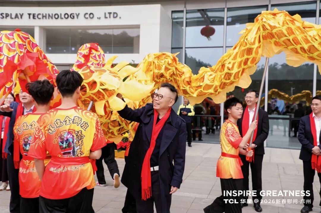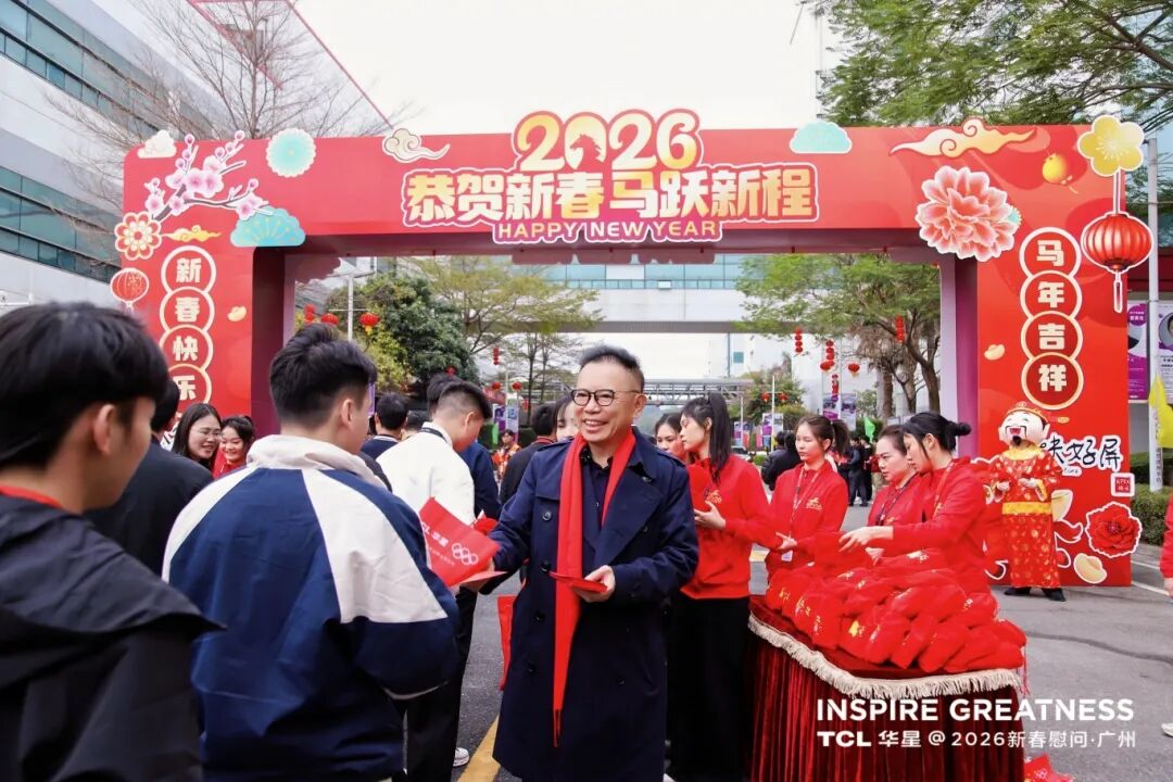 TCL创始人、董事长李东生、TCL科技高级副总裁、TCL华星首席执行官赵军等领导亲临厂区一线,向大年初一坚守岗位的TCL华星员工致以新春问候,并派发新年红包。指尖传递的是暖意,红包承载的是祝福,愿每一位TCL华星人2026年红红火火,一马当先,万事顺遂!