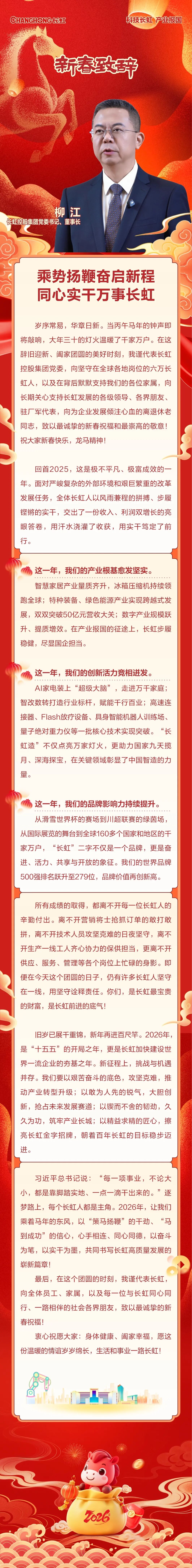 长虹控股集团党委书记、董事长柳江新春致辞:乘势扬鞭奋启新程 同心实干万事长虹