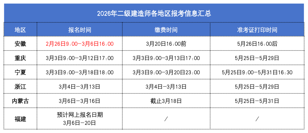 令人关注的2026年二级建造师考试,各省开始陆续公布报考公告。