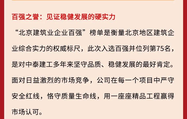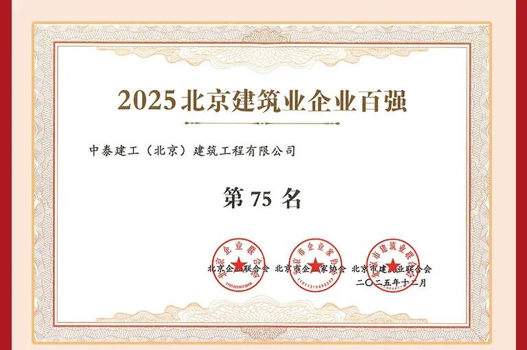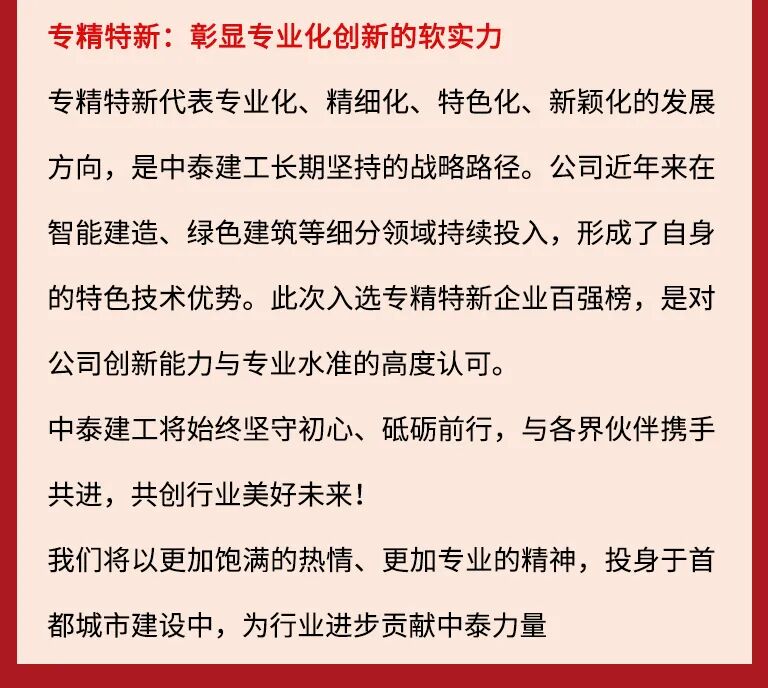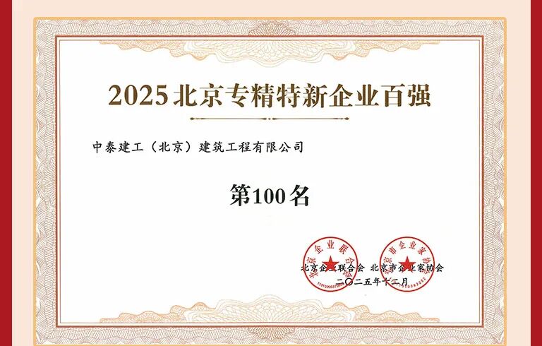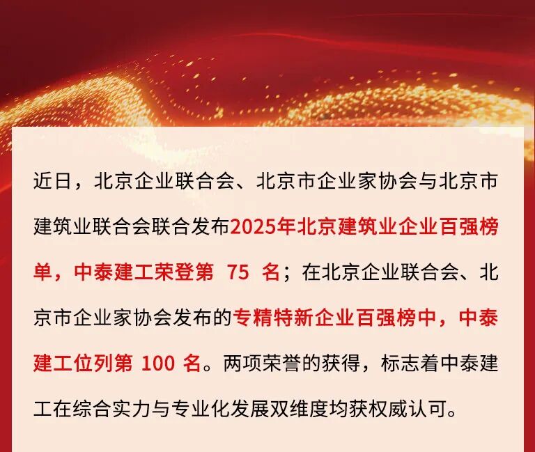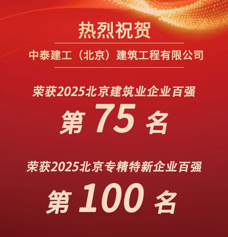 喜讯 | 中泰建工荣登2025北京建筑企业百强及专精特新企业百强“双榜”!