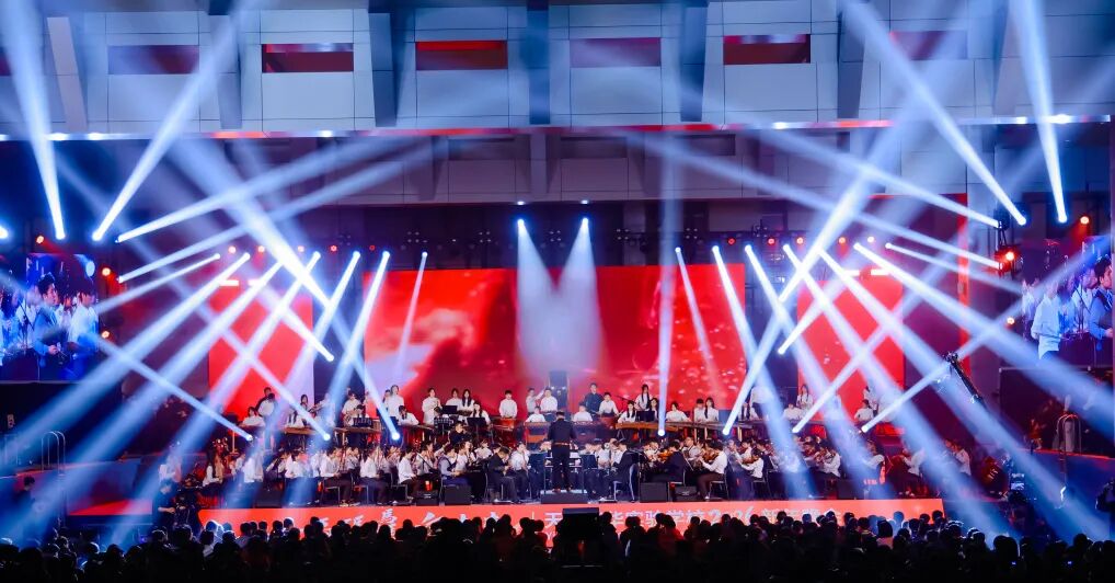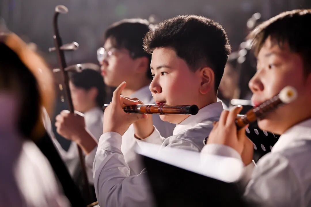 民乐、管弦乐在舞台上交织、对话