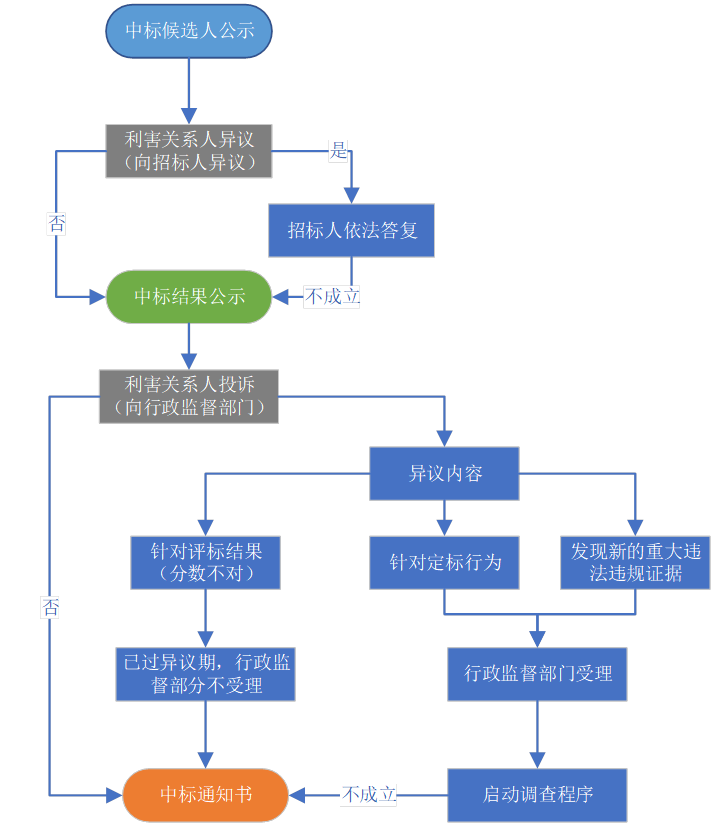 我们研究后认为,《招投标法》《实施条例》及《信息管理办法》之所以要求中标候选人公示,之后又增加了中标结果公示要求,本质上是为了维护利害关系人投诉的权利,同时避免中标通知书发出后发生无效等情形,将利害关系人对中标人的投诉撤销争议在中标通知书发出前解决,避免招标人向中标人发出中标通知书后,双方权利义务处于悬而未决的状态。