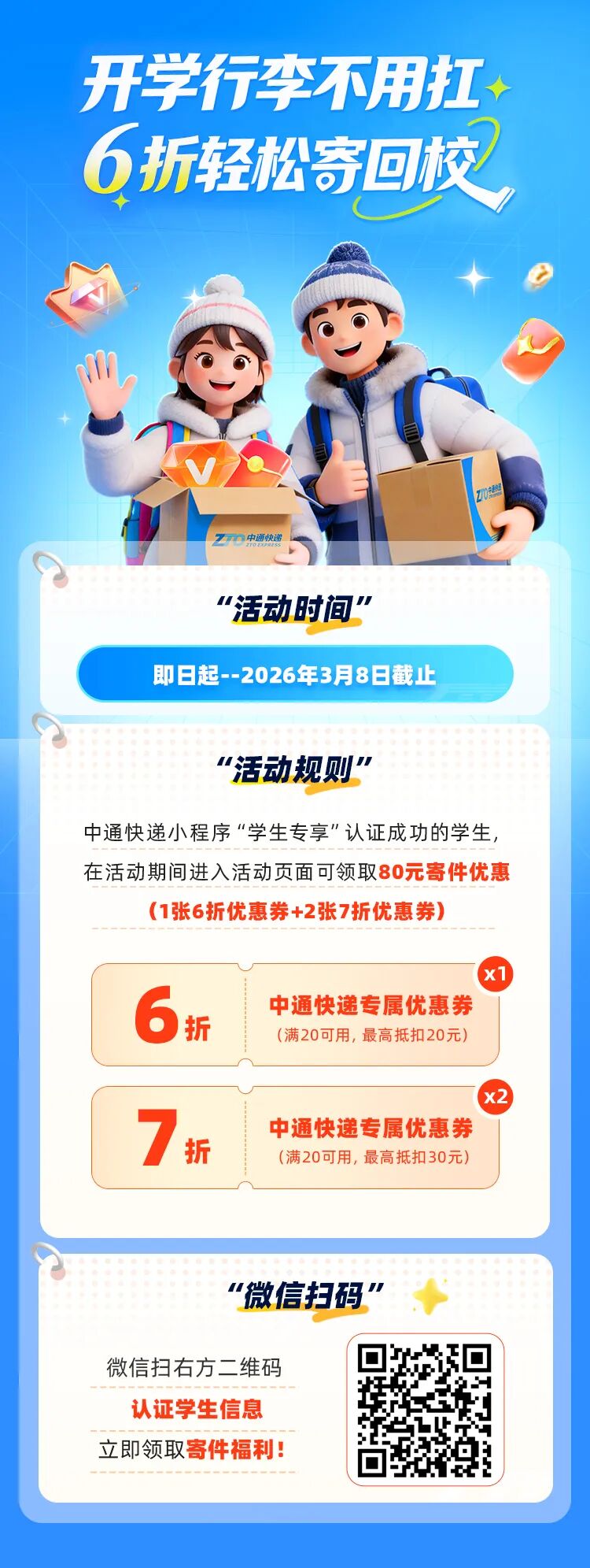 学生寄件优惠 | 开学行李不用扛,6折轻松寄回校~