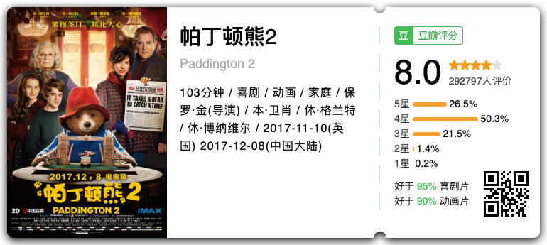 关闭服务号设置“消息免打扰”,不错过我们每一次推送!马上就要放假了!不管你是在回家的路上还是已经回到了家里,一起来看一部轻松的电影吧!露西婶婶的生日即将到来,帕丁顿决定送婶婶一份会让她终生难忘的礼物。最终,帕丁顿选中了一本立体绘本,然而这绘本是世间仅此一份的珍贵宝物,为了存钱购买绘本,帕丁顿决定开始工作,在遭遇了一连串的失败后,帕丁顿终于找到了适合他的工作——清洁玻璃窗。