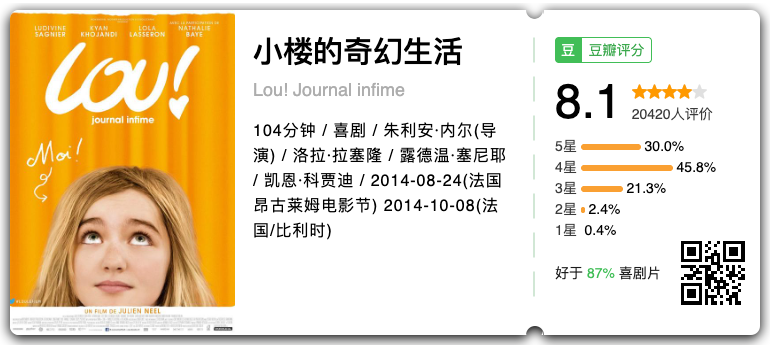 心地善良且富于幻想的12岁少女露,从小和天真烂漫的妈妈相依为命,在她缤纷的生活中有两项重要任务,一是每天偷偷观察对面男孩的一举一动、记录他的生活点滴;二是帮她宅到无可救药的妈妈找到人生新目标。一天,当一位潇洒不羁的音乐家搬进了她们的公寓大楼,不仅惊动了这对母女单纯平静的生活,也让露渐渐走出幻想的泡泡、踏入更辽阔精彩的世界。kiki204629:少女心爆棚的感觉,总之好爱这部斑斓的电影。母女二人相依为命的生活也那么精彩,一起去旧货市场淘宝,一起在阳台发呆。这女儿太懂事了,宅女麻麻好可爱,脑洞里的二次元世界里好多戏,男主存在感不强,母女最后和外婆的和解很窝心,一家人始终一家人。导演有点淘气,最后还来一发宝莱坞乱入的歌舞。
