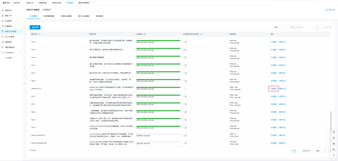 3.开通模型