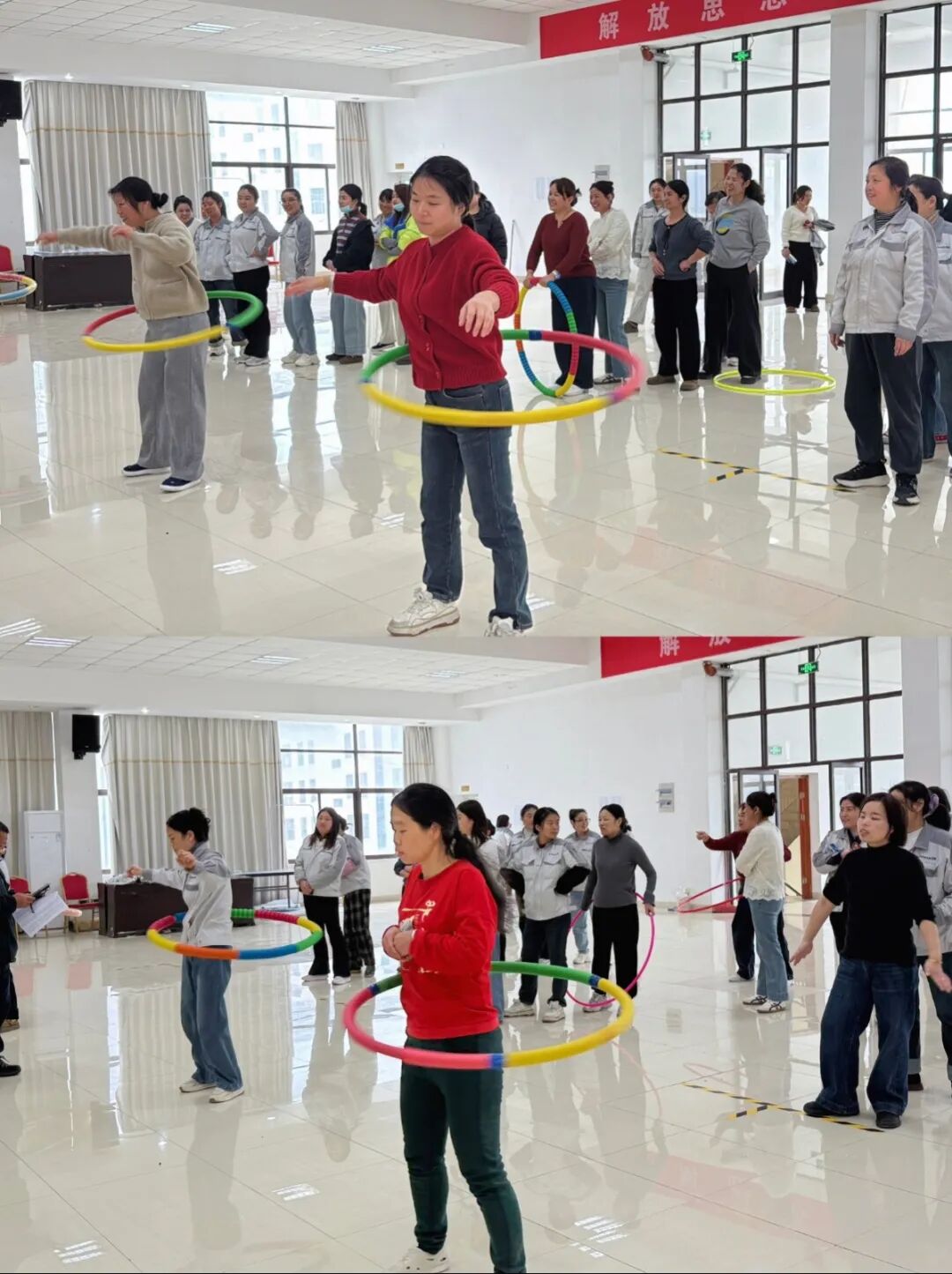 “腰肢轻摆,呼啦圈转起来!”3月4日至5日中午,食堂三楼活动室成为欢乐的海洋。为期两天的“呼啦转转转”趣味挑战赛吸引逾200名女职工报名参与,大家结伴而来,在工作间隙舒展身心。活动现场,有的女职工身姿轻盈,呼啦圈在腰间如行云流水般旋转;有的虽初次尝试略显生疏,却在同事的加油声中坚持挑战。“平时久坐办公,这次活动既锻炼了身体,又拿到了纪念小礼品,真是一举两得!”人事行政部毛艳明笑着展示手中的奖品。不少挑战失败的女职工当场立下“锻炼flag”,相约“来年再战”,凤凰女工面对“小挫折”乐观且从容。