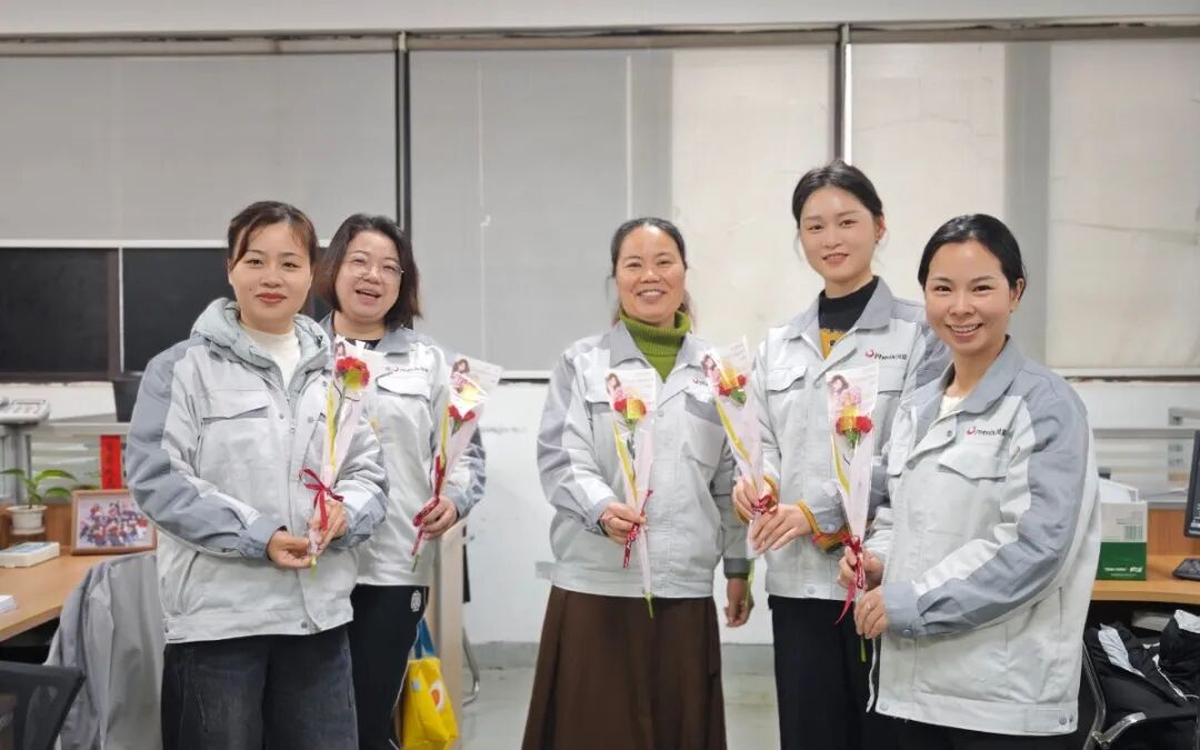 晨曦微露,暖意融融。3月6日清晨,公司纪委书记、工会主席罗跃忠带领工会委员分赴各生产车间、职能部门,将一束束娇艳的鲜花送到女职工手中。