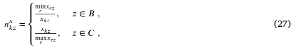 然后,利用Eq.(37)对有益评价指标和非有益评价指标的评价矩阵的扩展进行归一化。