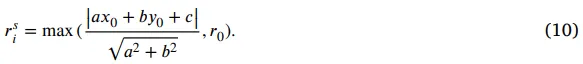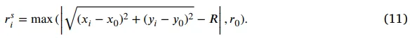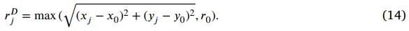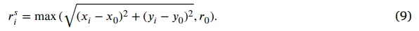 当距离足够小时,由于实际对象具有特定的体积,Eq.(8)不再有效。物体的等效半径用正实整数表示。将距离的修改值表示为: