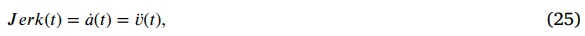 加速度被称为加速度的导数。剧烈的颠簸表明极有可能出现速度的急剧变化。因此,我们采用最大抖动作为舒适性指标,可表示为: