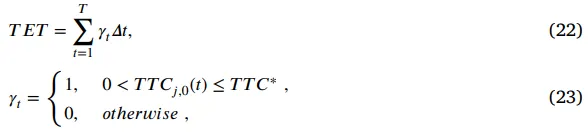 TET表示自动驾驶汽车处于危险环境中的总时间(Minderhoud & Bovy, 2001)。可以用TTC值低于TTC阈值TTC*来计算,可得: