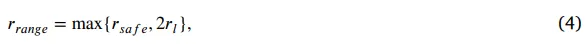 式中为自动驾驶汽车的初速度, 为车辆的响应滞后时间,和分别为自动驾驶汽车的最大加速速率和最小减速速率。设自动驾驶汽车影响区域半径为: