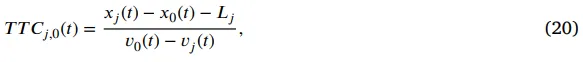 TTC是评估自动驾驶汽车安全性的常用安全度量(Van der Horst, 1990),其计算公式为: