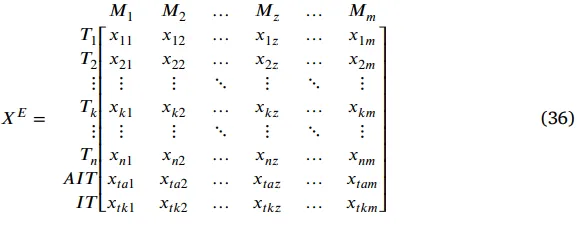 根据定义的AIT和IT,构建评价矩阵的可拓式如下: