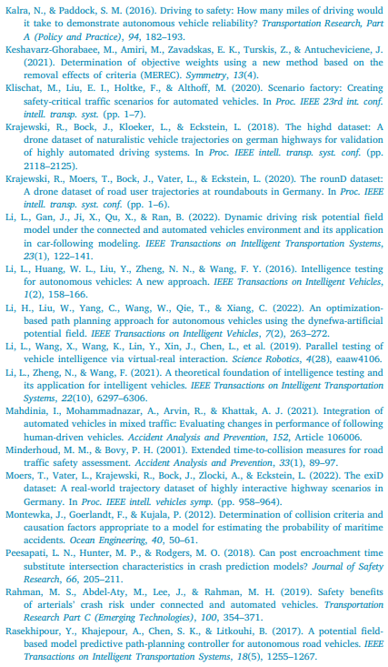 多标准决策制定(MCDM)方法在各个领域都是一种流行的工具。在自动驾驶汽车(AVs)领域,MCDM方法已被用来促进决策算法。具体来说,Chen, Zhao, Liang, 和 Mei (2014) 使用MCDM方法辅助自动驾驶汽车的机动选择。为此,他们采用了层次分析过程(AHP)方法来确定属性权重,并使用了理想解排序法(TOPSIS)来识别最优驾驶机动。Sarraf 和 McGuire (2020) 应用MCDM方法来获取最佳驾驶路径以提高驾驶安全性。此外,Gilbert, Petrovic, Pickering, 和 Warwick (2021) 应用了包括TOPSIS、AHP和分析网络过程在内的三种多标准决策制定方法,以协助选择自动驾驶汽车应根据与其他车辆的冲突关系行驶在哪个车道上。