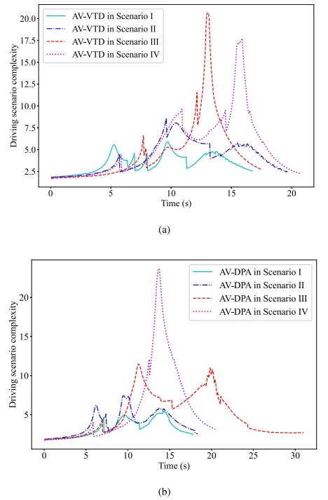 图8. VTD自动驾驶模型(a)和DPA自动驾驶模型(b)的驾驶场景复杂性量化结果。