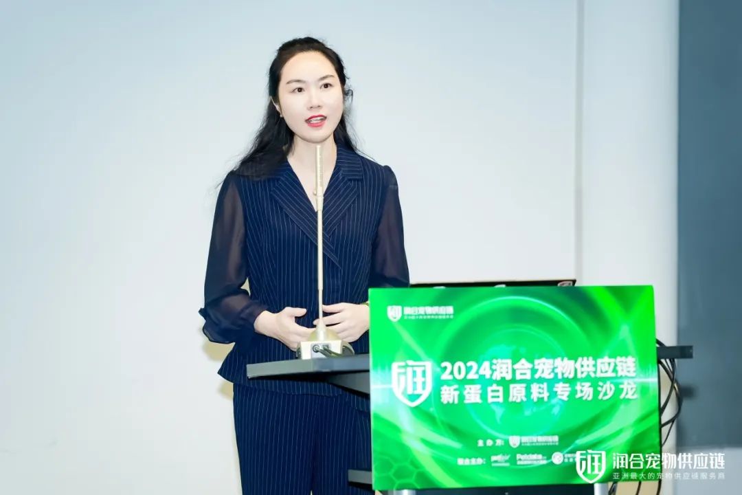 在新蛋白原料沙龙开场时,主持人润合宠物供应链副总经理兼宠物行业白皮书&派读宠物大数据平台创始人刘晓霞女士热情欢迎了各位嘉宾,并简要介绍了活动的背景与主题。她指出,本次沙龙将深入探讨新蛋白原料该如何通过生物科技赋能,构建更加安全、可持续的食物系统。旨在为行业带来创新思路和新的发展机遇。