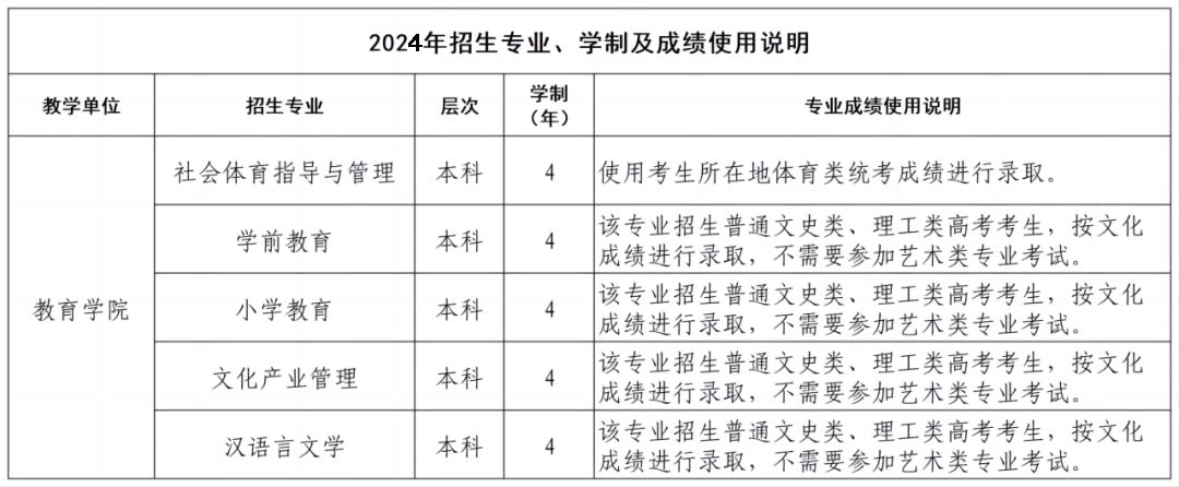 学院现有文学、教育学、管理学三大学科。2024年招生专业:汉语言文学、学前教育、社会体育指导与管理、文化产业管理、小学教育。