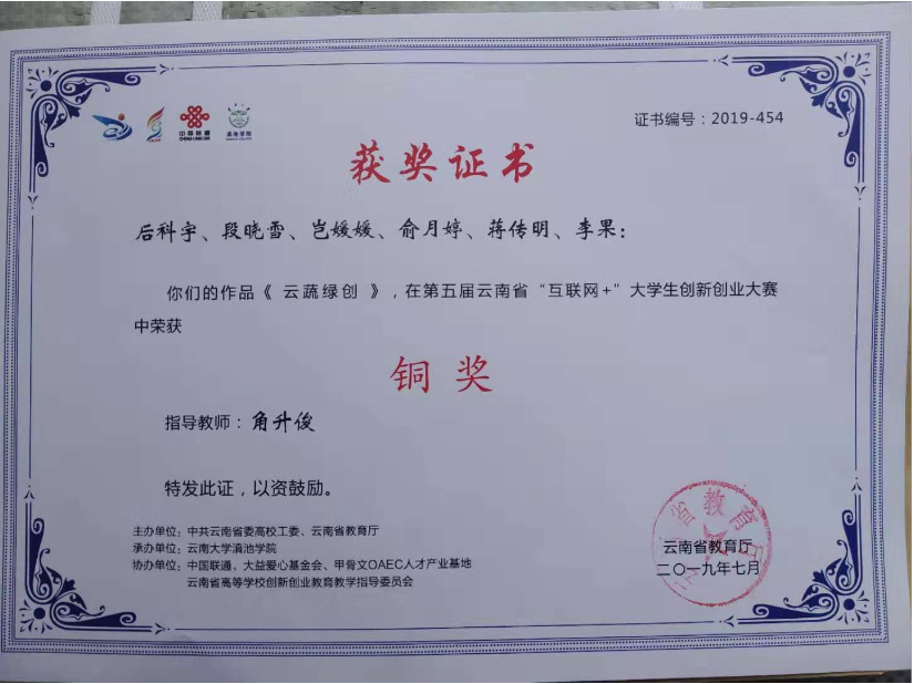 参加第七届中国大学生创新创业大赛云南赛区总决赛