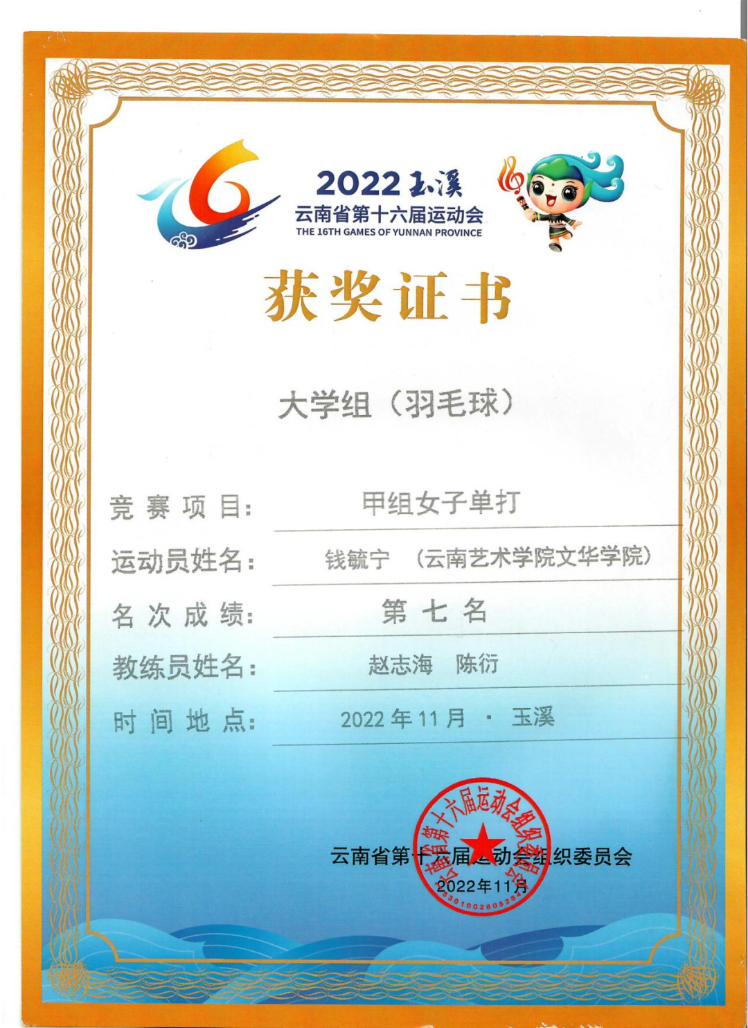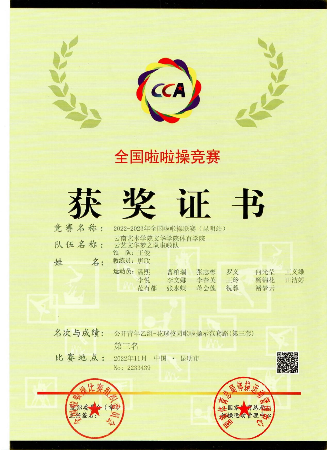 本专业多次在各大体育赛事获得优异成绩。在云南省教育厅举办的运动会中,本专业体育健儿在田径,武术,羽毛球,篮球等项目中经过激烈角逐,获得奖项10余个。