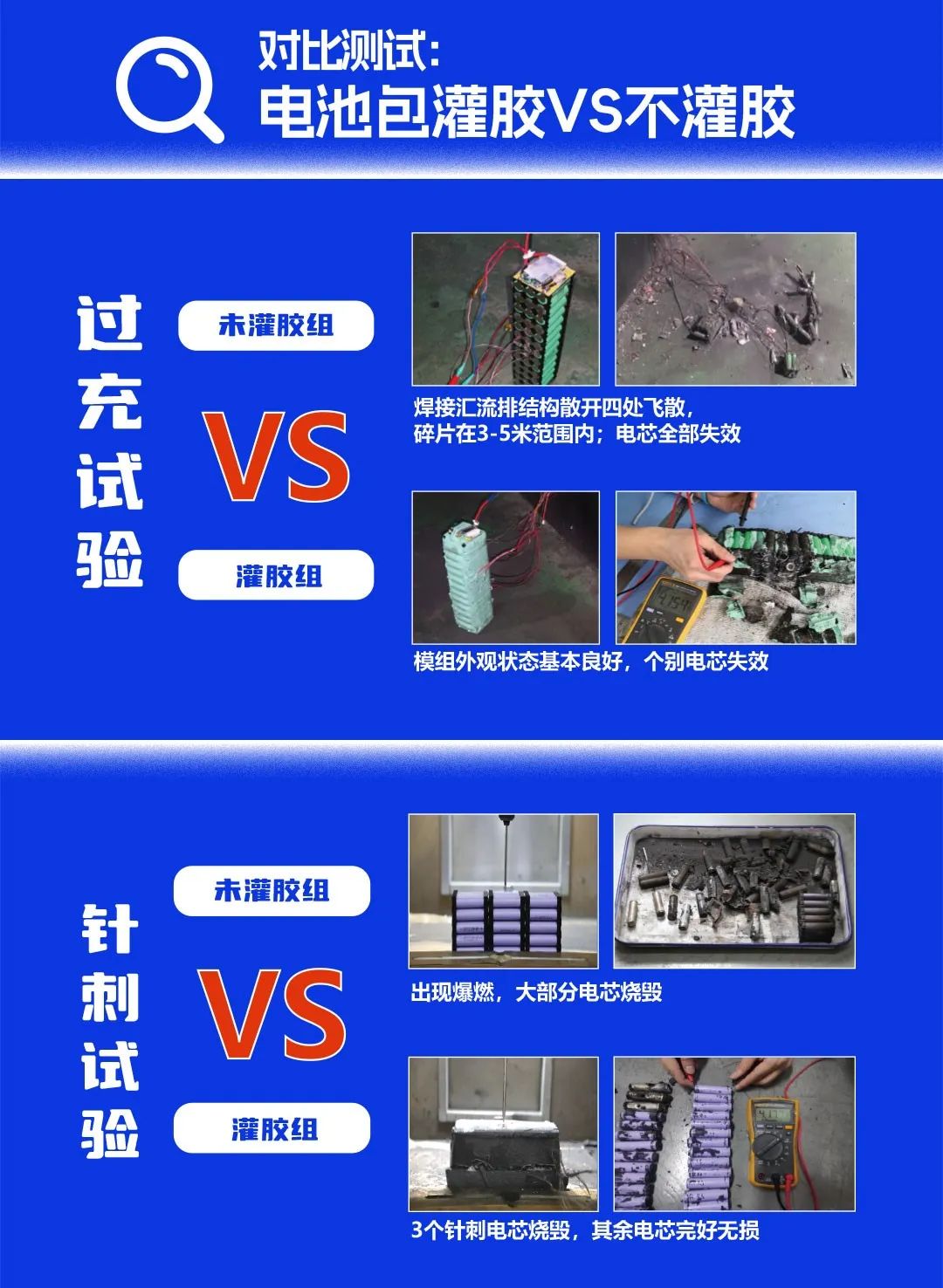 产品粘度低,易流平,快速渗入电芯之间的间隙,实现全方位的包覆。并且其胶体柔软有有弹性,起到减震缓冲的作用。