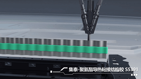 在电芯与液冷板之间,可用集泰-聚氨酯导热粘接结构胶S5391连接。