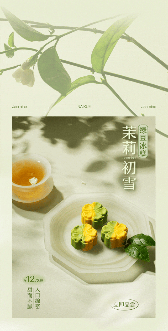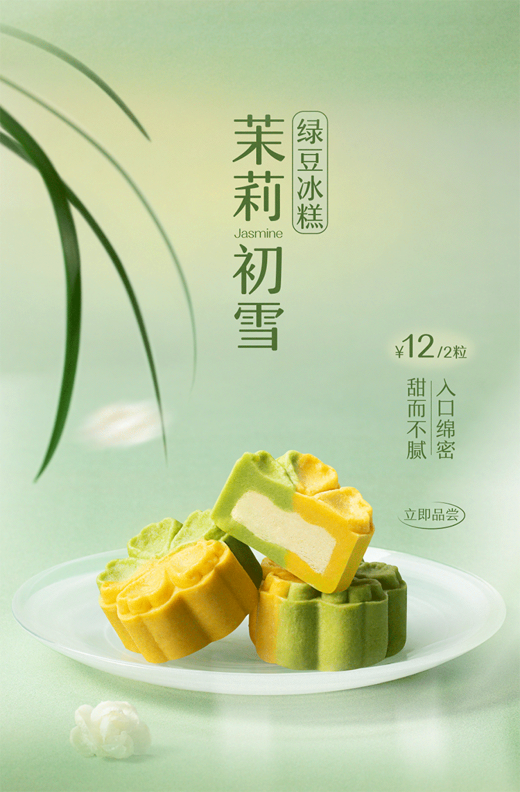 再创新!茉莉初雪绿豆冰糕,全新上市!