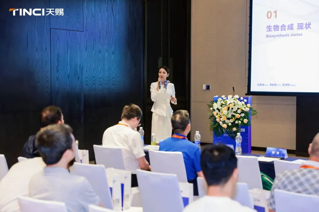 天赐材料研究院研发工程师宋旻子陌博士的《天赐生物合成平台创新研发及应用》报告中首次公开了天赐研究人员在生物合成技术上的突破,多款生物合成原料有望实现量产。