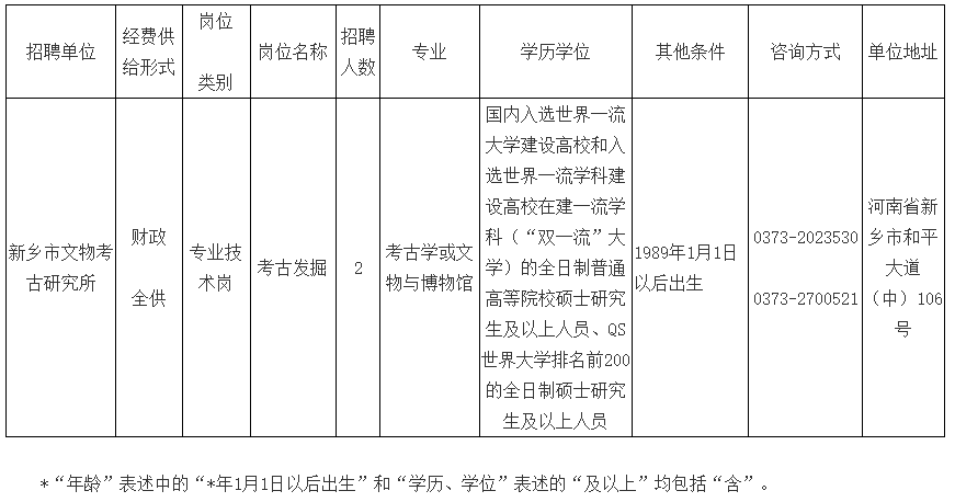 新乡市文物考古研究所2024年招才引智岗位信息表