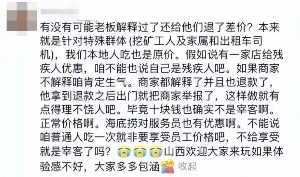 “山西阴阳面馆”迅速成为舆论焦点,有人指责,一碗面坏了山西名声,但随着越来越多的知情人透露:“这是一家老面馆,长期为矿工工人提供人情价。”
