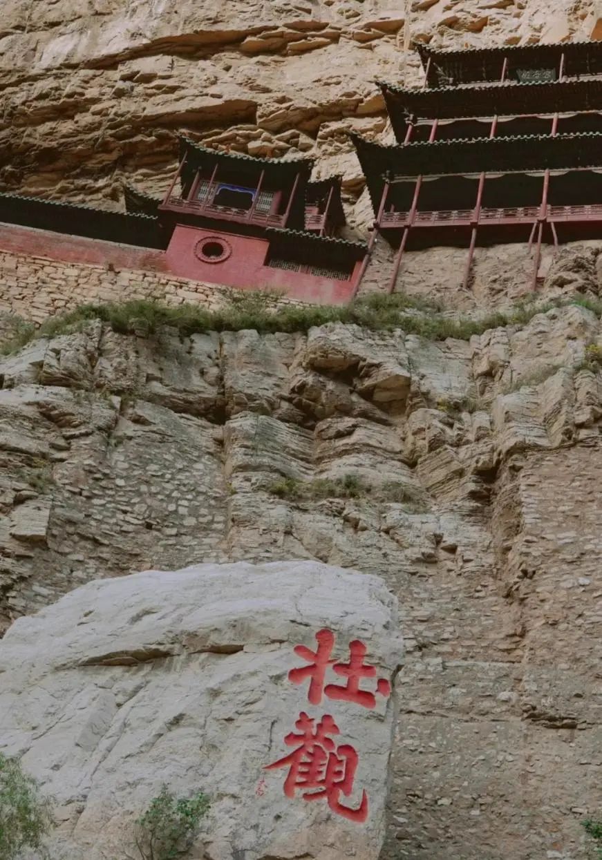 据传,诗仙李白曾来到此处,为悬空寺的宏伟所震撼,于是挥毫题下“壮观”二字。然而,他觉得单纯的“壮观”还不够,便在“壮”字旁多加了一点,可见他当时的激动之情完全不亚于我们。