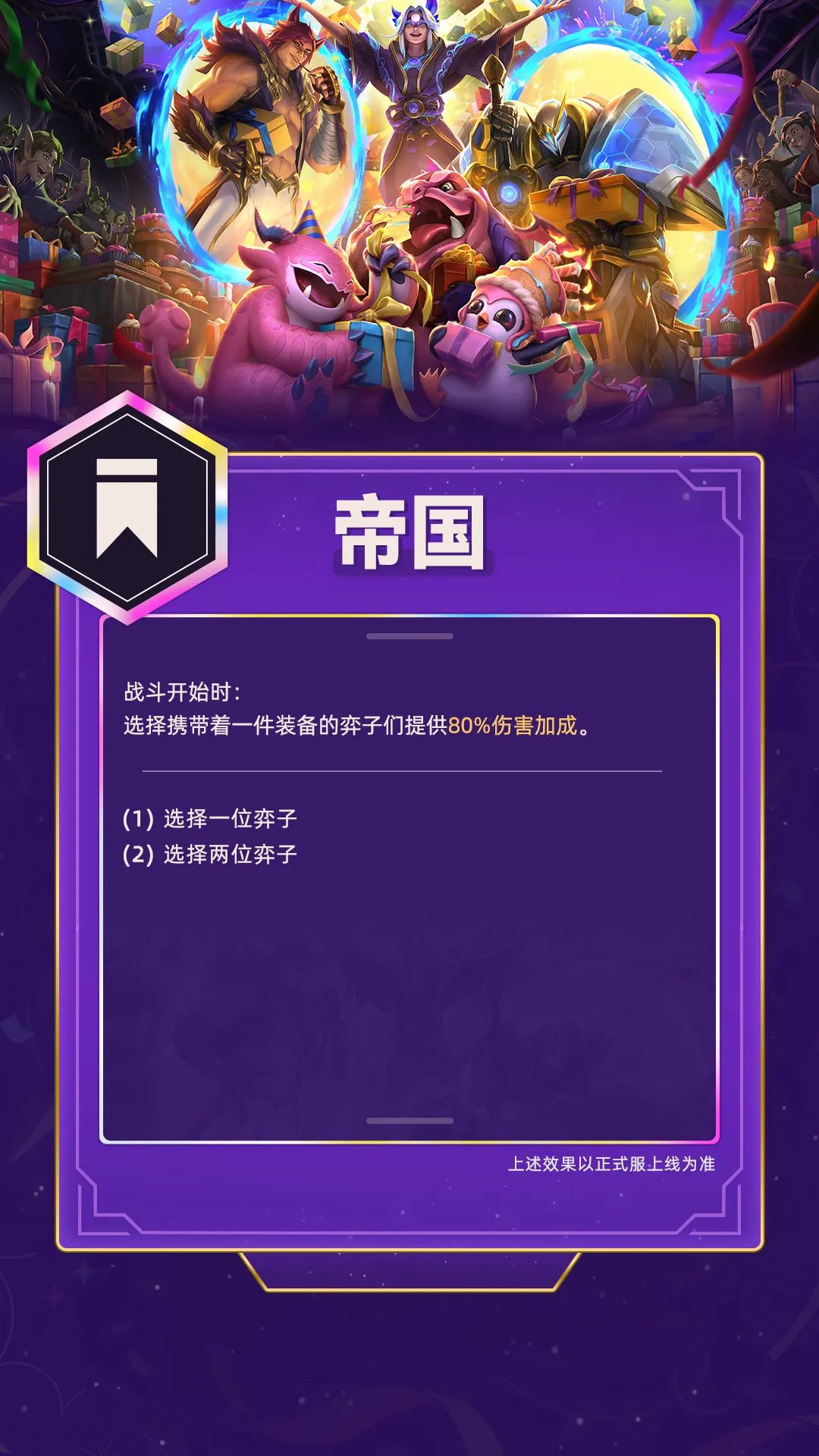 S1赛季将带着【帝国】和【暗影】来到云顶之弈的生日派对,而元素崛起保留了名副其实的风格,拿出了【山脉】和【极地】羁绊。