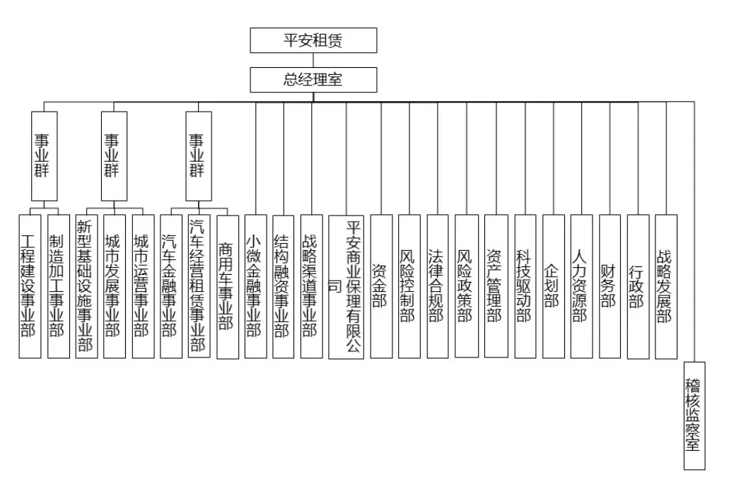 汽车业务是平安国际融资租赁有限公司的重要业务,其组成部分包括汽车金融、商用车和汽车经营租赁3部分,每部分均设立了相对应的事业部。