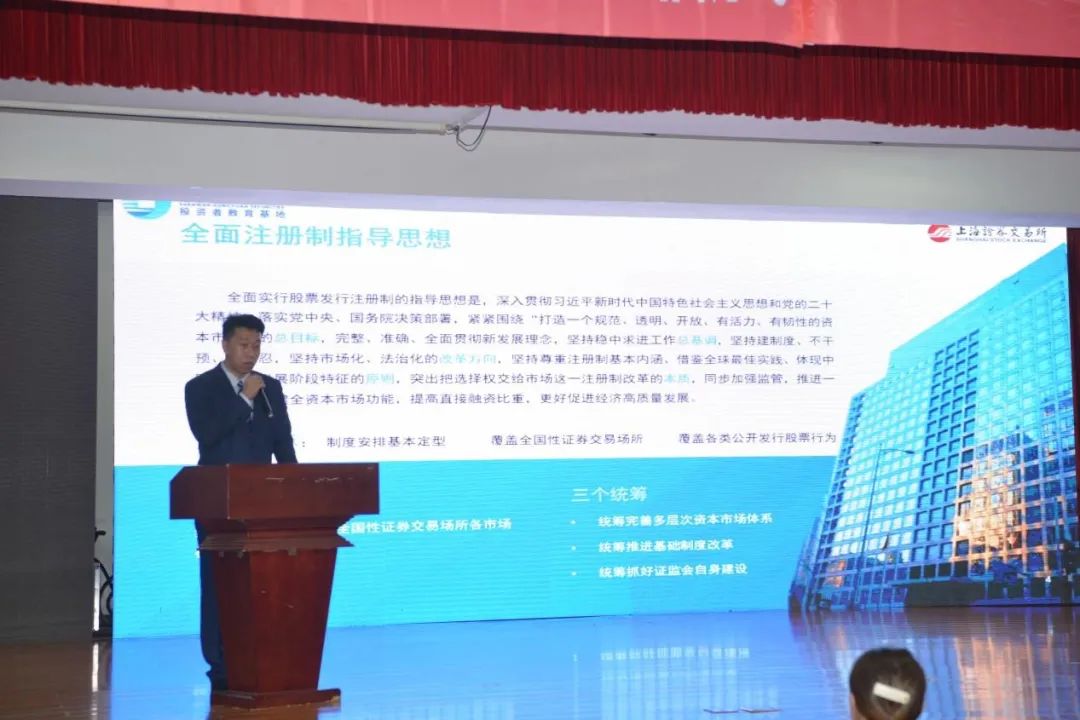 为进一步贯彻落实中国证监会将投资者教育纳入国民教育体系,提升青年群体金融素养和风险防范意识,提升在校学生的财商素养,加强非法证券活动的辨别能力,树立理性投资理念。5月31日下午,申万宏源证券黑龙江分公司走进哈尔滨广厦学院开展“坚持理性投资,谨防上当受骗”主题宣讲会。学校党委副书记、副校长朱兴文,学生工作处处长孙婷,学生工作处处长助理张志鹏,团委副书记贾留阳,各二级学院党总支书记、副书记,全体辅导员老师及学生代表500余人参加讲座。讲座由学生工作处处长孙婷主持。