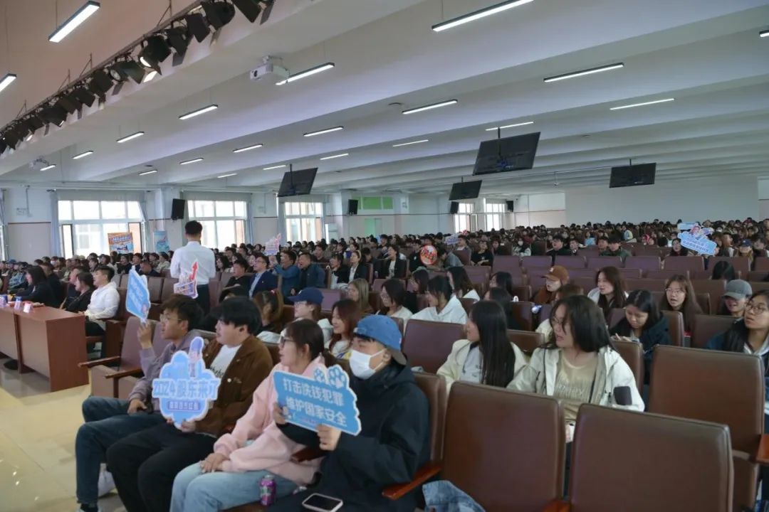 2024年,一部热播电视剧《繁花》带火了证券行业,带火了西康路101号,也燃起了股民们的回忆杀。申万宏源证券哈尔滨长江路证券营业部大堂经理张雪从1984年改革开放的第一股“飞乐音响”、大户室、连夜排队抢认购证的盛况为切入点为同学们进行了内容生动的讲座。她通过轻松幽默的语言,以问答的形式向大家普及了大学生反诈知识,积极引导学生思考日常生活中可能遇到的诈骗陷阱和应对方法,特别强调了妥善保管个人身份证件和银行卡信息的重要性,迅速吸引了在场学生的注意力,激发了师生们对讲座的兴趣。