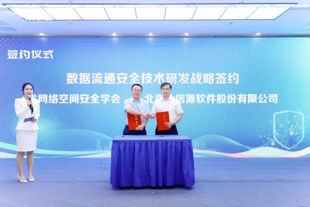 在沙龙的合作签约环节,北信源公司与江苏省网络空间安全学会正式签署了关于“数据流通安全技术研发”的战略合作协议。北信源副总裁王春波与东南大学网络空间安全学院副院长陈立全作为双方代表进行签约,共同见证了这一重要时刻。