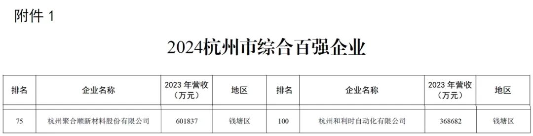 会上,发布了2024杭州市综合百强企业榜单,该榜单是由杭州市工业经济联合会、杭州市企业联合会、杭州市企业家协会根据国际、国内通行规则,以上一年度企业营业收入为基本排序标准,对百强企业进行调研和数据分析后进行评选发布,一同发布的还有2024杭州市制造业百强企业榜单、2024杭州市数字经济百强企业榜单。