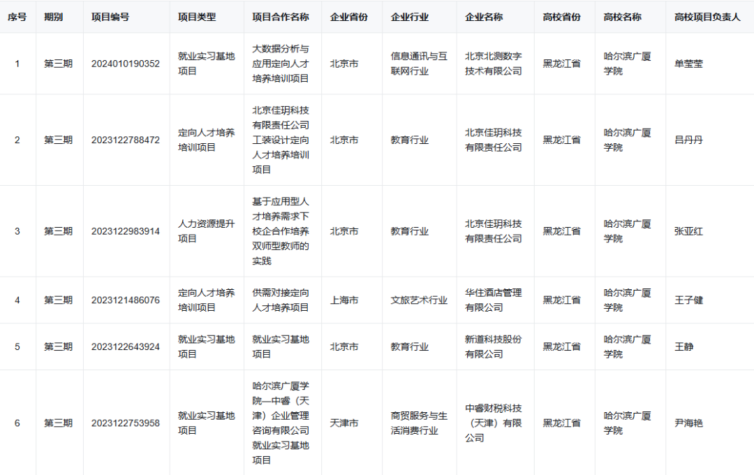 喜报!哈尔滨广厦学院获批6项教育部第三期供需对接育人项目