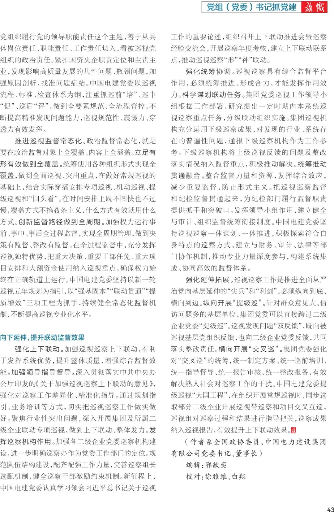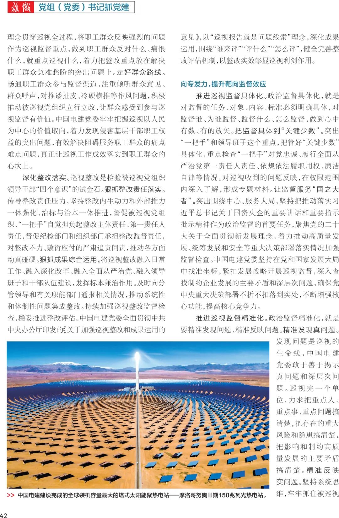 中国电建党委主要负责同志在《旗帜》刊发署名文章:在新征程上推动巡视工作向深拓展、向专发力、向下延伸