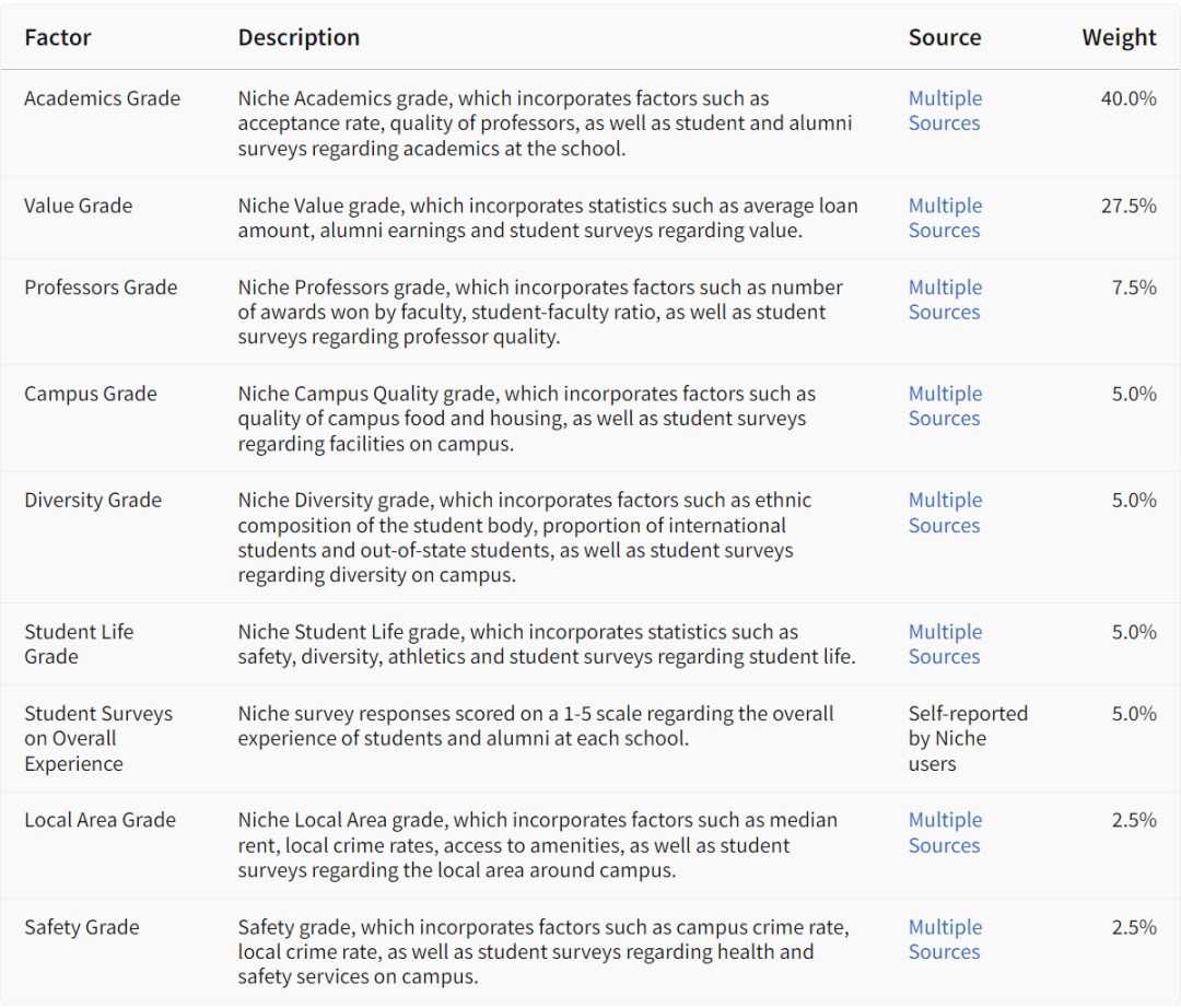 这种独特的评价方式使得Niche排名在很大程度上反映了公众对大学的真实看法和体验。