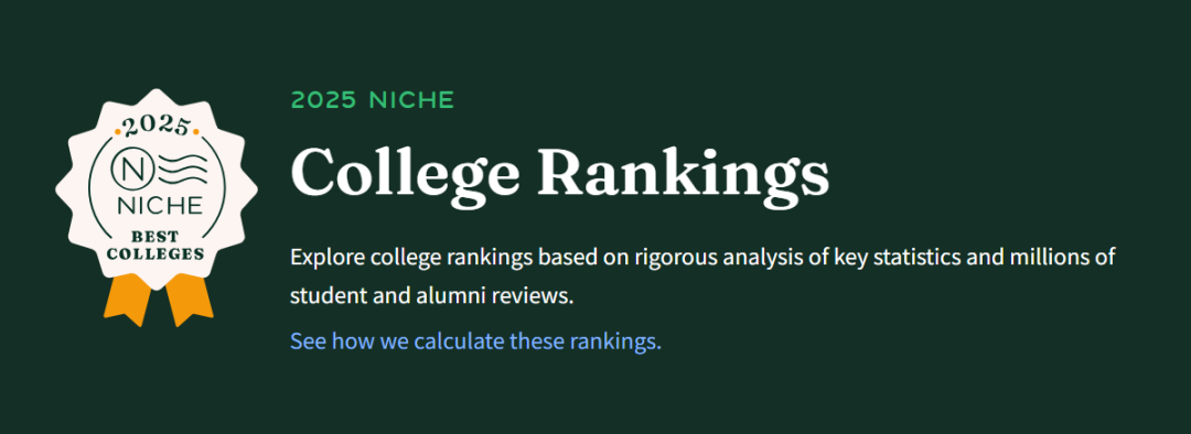与其他排名机构如U.S.News等不同,Niche不需要大学提交数据和专家进行主观评价,其排名主要基于1亿多份来自学生、家长和当地居民的真实评论和反馈,以及美国教育部、美国人口普查、联邦调查局等数十个公共数据库提供的权威数据。