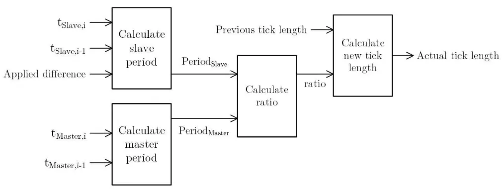 这些时间是CAN帧的发送和接收相关联的与硬件相关的延迟,直到它们在消息存储器中可用为止。它们可以被假定为几乎是常数,因为can控制器是完全在硬件中实现的。信号在CAN总线上的传播延迟。它取决于总线的长度,并且对于固定的网络配置是恒定的有了这些很细节的分析,我们只需要把每一段的时间计算出来,测量出来,就理论来说是可以做到发出去真正时间戳的协议。同步以及发送/接收任务运行在CPU上,并由调度器周期性地调用。当调用发送函数时,要发送的数据被放置在发送缓冲区中,并在总线允许时发送。一旦消息在发送缓冲区中,发送函数就会返回。这个时间与消息实际发送的时间不一致,因此它不是绘制准确时间戳的合适方法。当消息通过总线到达时,如果处理成功并且在传输过程中没有发生错误,CAN控制器将通过接收缓冲区使它可用。当调度程序调用CAN接收任务时,软件会首先会注意到一条新消息。此任务从接收缓冲区读取所有消息并通知应用程序。理论来说CAN 的时间戳需要打在CAN发出去(完全发出去),也就是最后一个bit 完了之后的时刻。所以 已成功发送的帧对所有总线节点,包括发送方,都显示相同。一旦再次收到已发送的消息,发送方就知道它已成功发送。因此,可以使用相同的机制生成发送和接收时间戳。在这两种情况下,都接收到消息,一旦通知应用程序,就读取当前时钟值。这是两个一样的过程,只是接收方多了个线路的延迟。这个线路延迟是纯硬件决定的。前面说的是协议的保证两个ECU的时间同步,但是每个ECU 的晶振可能是不一样的。所以比如master 说 他过了1s钟,经过了100000000个ticks (晶振).但是 对于 slave节点来说,100000000 ticks(晶振) 虽然自己认为是1s ,但是实际上可能不是一样的的。所以我们有必要让slave 知道master的晶振与自己的晶振的rate.所以,通过从通过消息交换接收的时间戳,现在可以同步到Master的时间。在最简单的情况下,其中从时钟被直接设置为接收到的值。这种方法的缺点是可能会发生时间跳跃。因此,在这个工作速率校正中,时钟偏差通过调整时钟的速率来补偿。这里所使用的机制区分了两种比率。标称速率与主速率的rate同步。上面的过程是仅仅从软件的角度来进行时间的同步。必然会受到任务调度的不确定性影响。以及调度的颗粒度影响。我们可以通过提高任务的优先级,或者是中断。以及调度周期很小的方式来减少误差。在计算rate的时候,理论来说rate 不应该变化很大。所以我们可以设置可靠的Filter, Debounce 机制来减少rate的影响。进而减少对时间本身同步的影响。
