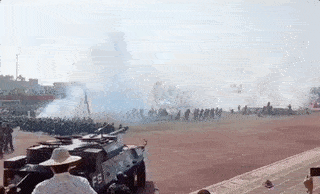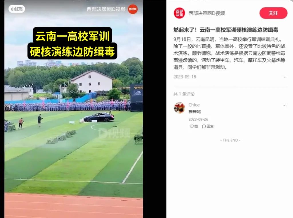 坦克进校园都已属于稀疏平常,今年还有个别学校在军训时模拟了无人机空袭。